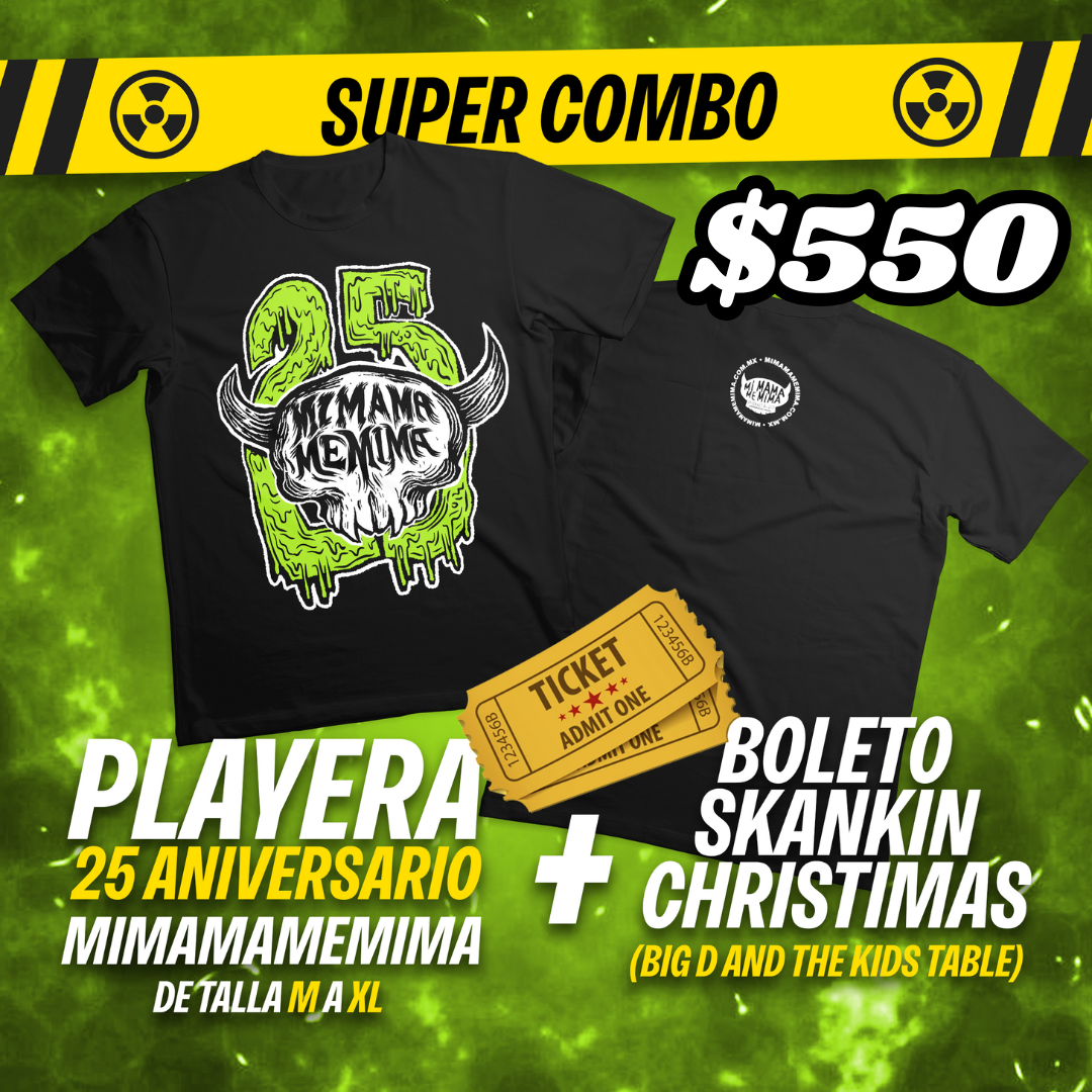 Pero si como nosotros no tienes llenadera, tenemos un super combo de playera más concierto Skankin Christmas a un precio especial de $550 pesos.